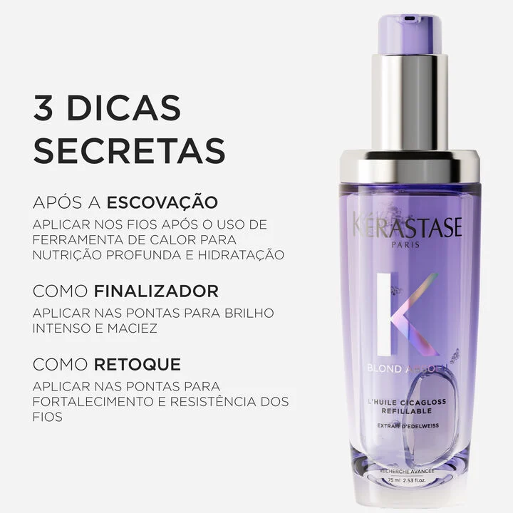 Este kit reúne o shampoo Blond Absolu Bain Lumière, o condicionador Blond Absolu Cicaflash e o óleo Blond Absolu Cicagloss, formando o trio perfeito para conseguir nutrição profunda, reparação capilar e proteção contra danos, enquanto realça a beleza dos cabelos loiros.