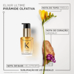Para potencializar seu tratamento antiqueda e revelar a beleza sublime dos seus cabelos, o Kit Kérastase inclui o Óleo Capilar Elixir Ultime em versão mini, um ícone de sofisticação agora em tamanho compacto para acompanhá-la em qualquer ocasião. Sua fórmula icônica, enriquecida com Óleo de Camélia Francesa e Camélia Selvagem, atua como um verdadeiro elixir da beleza, transformando cabelos opacos e sem vida em uma cascata de brilho, maciez e força. Experimente a praticidade de Elixir Ultime e use-o como tratamento pré-lavagem, protetor térmico ou toque final. Sinta a diferença desde a primeira aplicação. Após 2 gotas: 100% mais brilho por 48 horas e 96 horas de antifrizz Mais maciez*