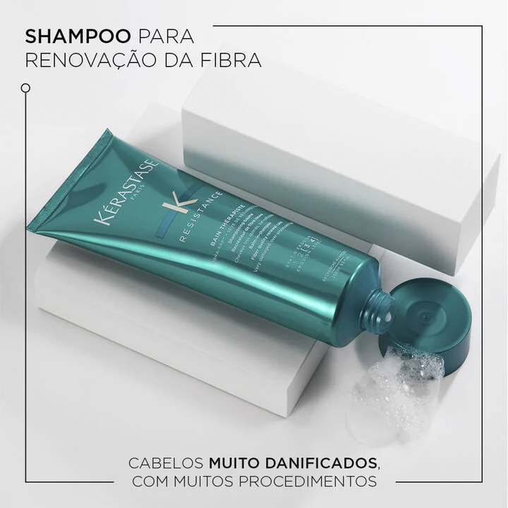 Bain Thérapiste foi desenvolvido especialmente para cabelos extremamente danificados e submetidos a muitos processos químicos. Este shampoo para cabelos danificados possui textura gelatinosa que reduz o atrito durante a lavagem. Com a avançada tecnologia de Fibra KAP + Sève de Réssurrection, um inovador complexo que age durante a lavagem para proteger a fibra capilar, proporcionando maciez, brilho e revitalização profunda.